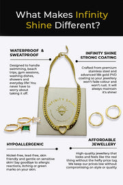 Infinity Shine is your go-to for affordable, high-quality jewellery alternative to real gold or silver, that looks real and you won’t have to take it off! Our brand was founded by Betina, a busy mum of 2 who wanted to bring affordable lasting pieces to help other mums and everyday women feel confident and stylish. She recognised the massive increase in day to day living expenses and how it made something as simple as spoiling yourself or gifting that woman in your life with jewellery impossible.